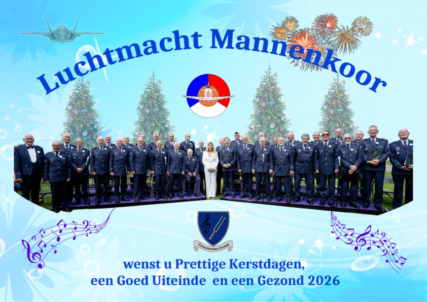 Het Luchtmacht Mannenkoor wenst u prettige feestdagen en een goed 2026 toe