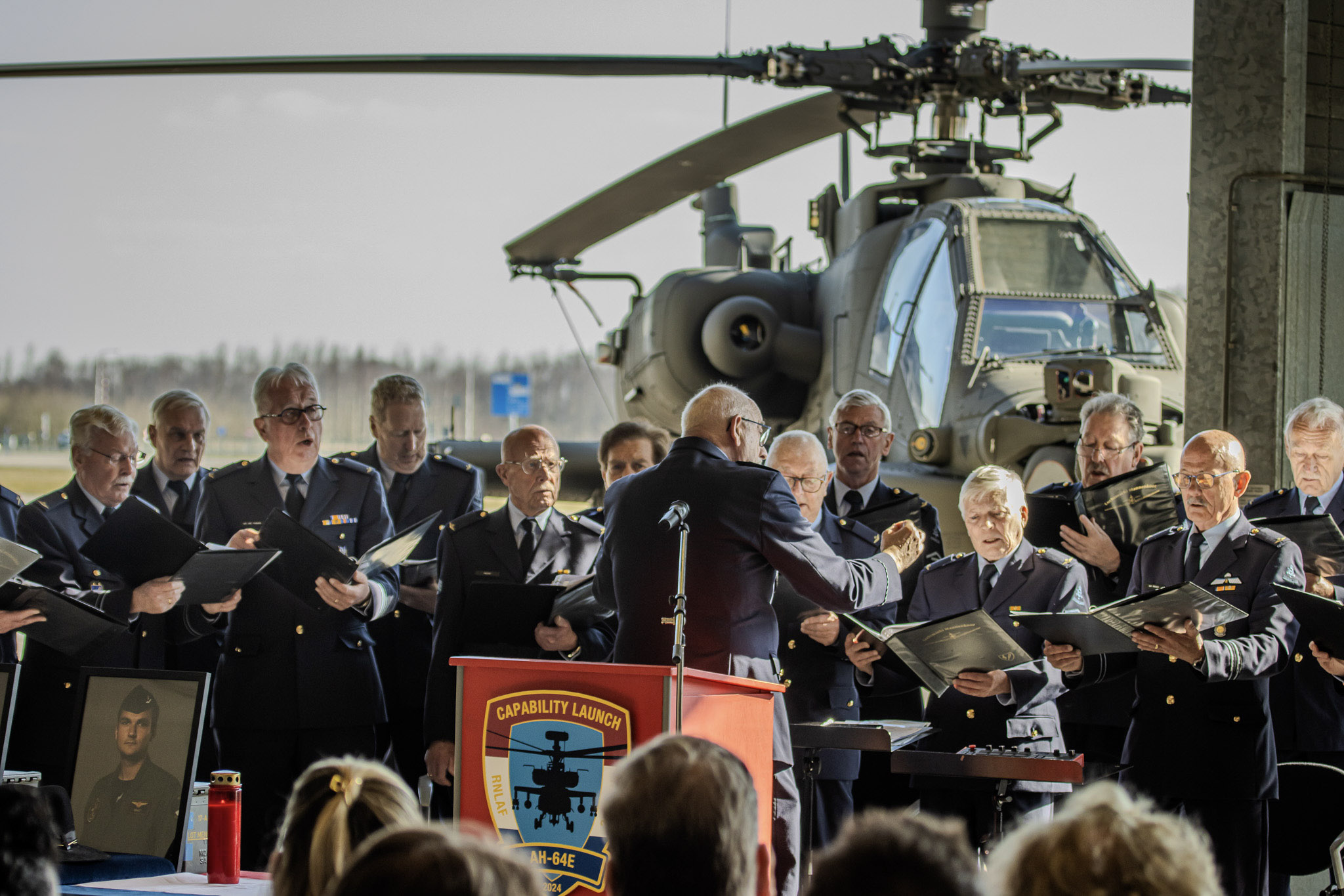 Met een bus vertrekt het Luchtmacht Mannenkoor naar Vlb Gilze-Rijen voor de de herdenkingsdienst voor de 10 jaar geleden in Mali gecrashte vliegers van het 301-Squadron.