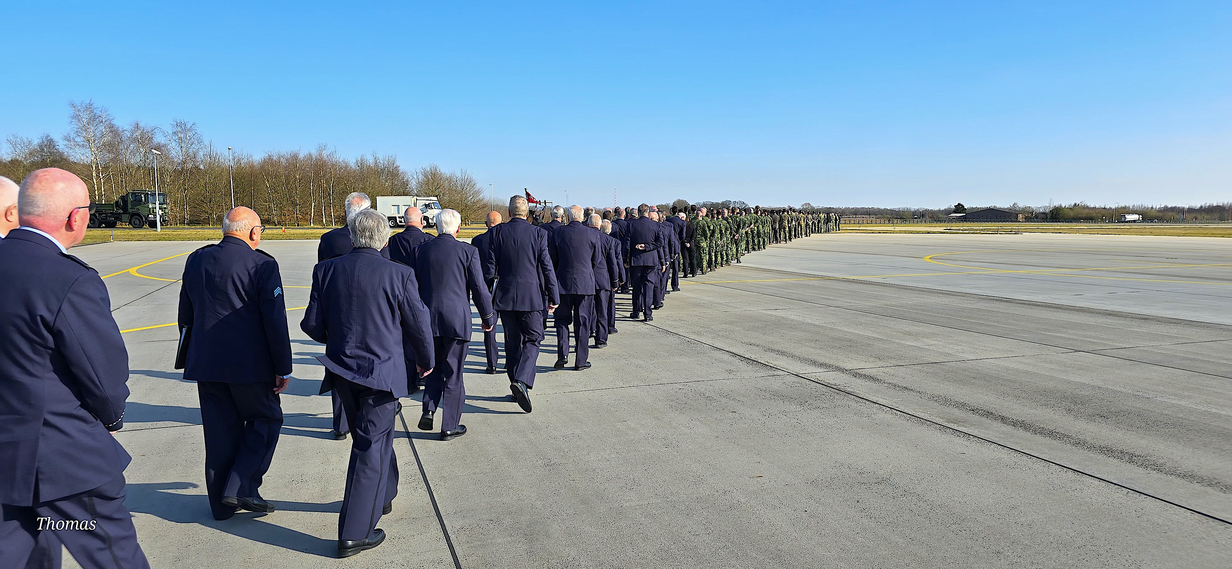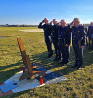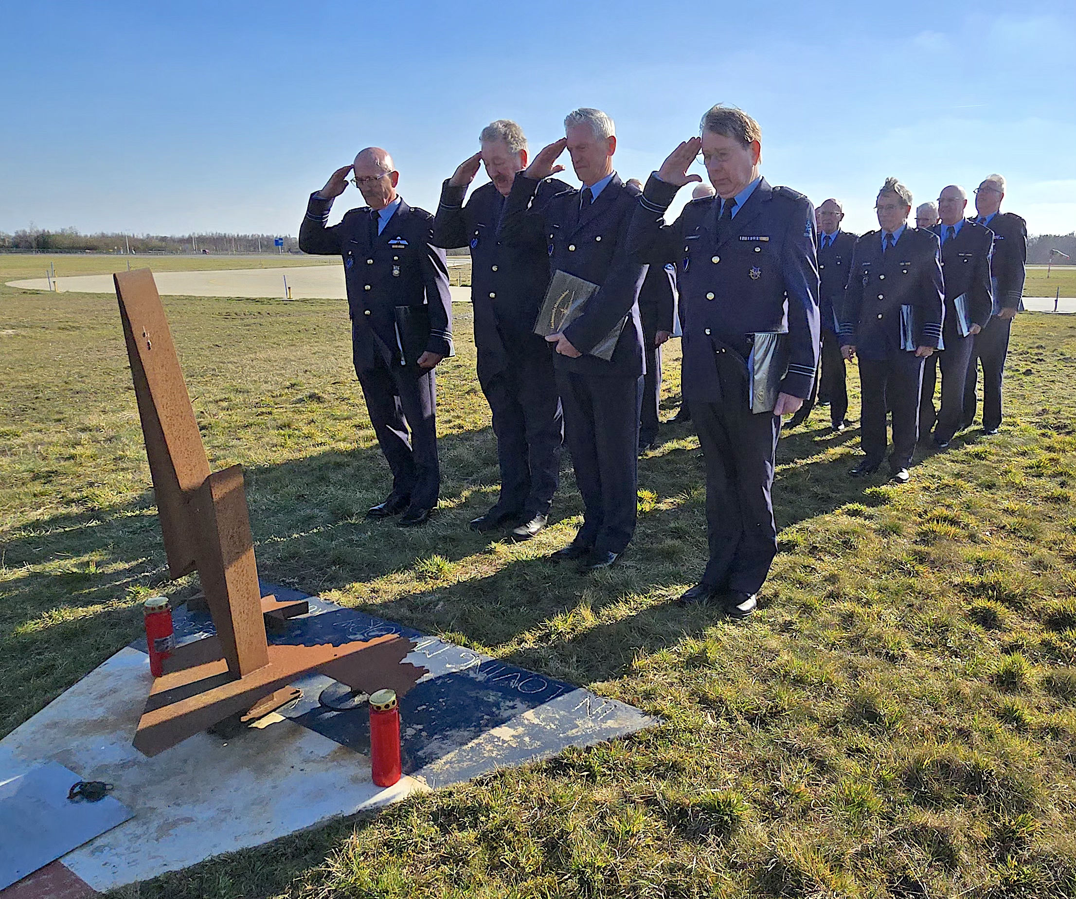 Na afloop wordt een groet gebracht bij de herdenkingsmonument naast de rolbaan.