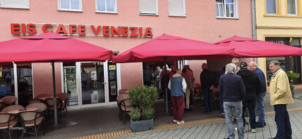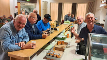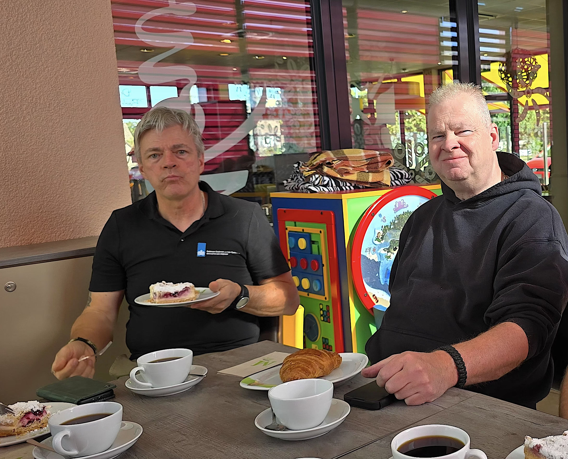 De busreis verloopt voorspoedig, onderweg wordt koffiegedronken bij Bäckerei Hensel in Hiddenhausen, net zoals vorig jaar.