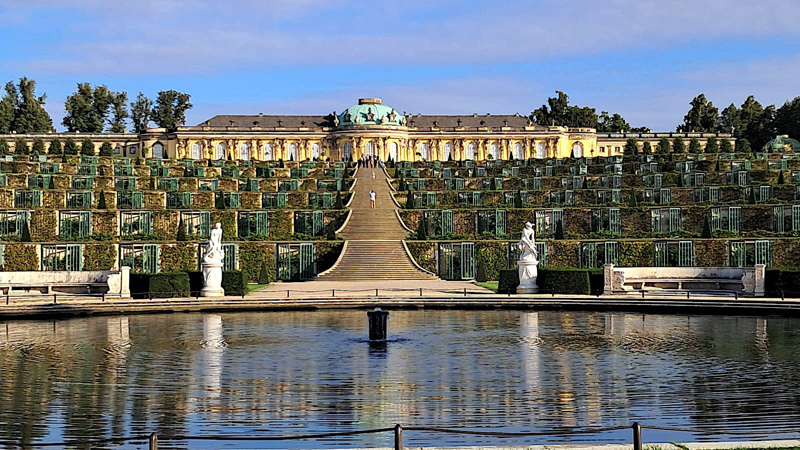 Onder leiding van onze gids, Rainer Kallenberger, gaan we op bezoek naar Potsdam, een stad met veel Nederlndse invloeden. Allereerst Schloss Sanssouci, met zijn mooie tuin.