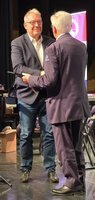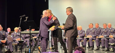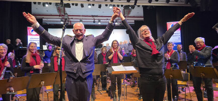 De dirigenten nemen het applaus in ontvangst. De Stadsradt is verguld met zijn geschenken.