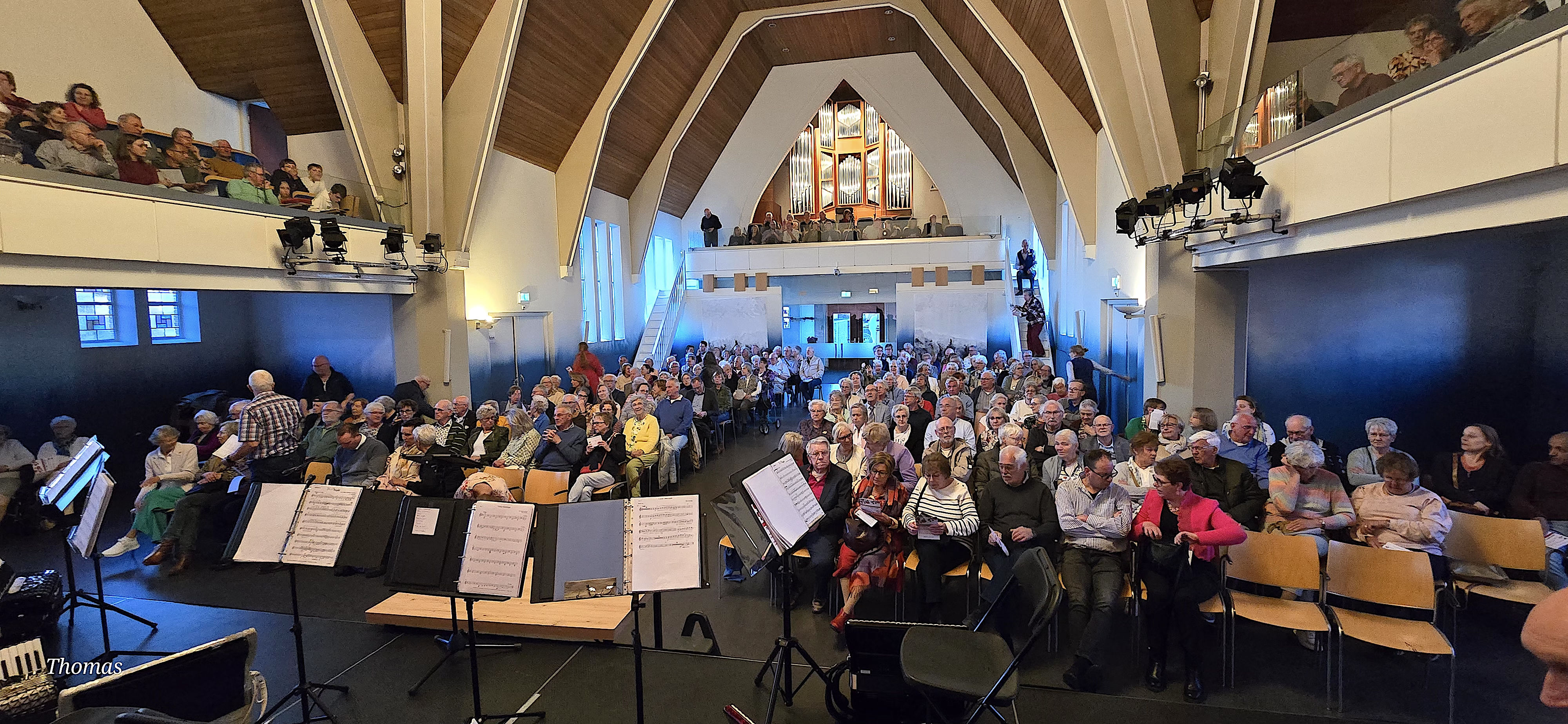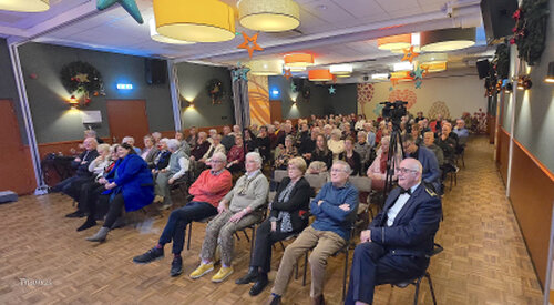 Na het inzingen betreden we een volle zaal met een aandachtig luisterend publiek.