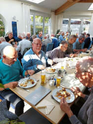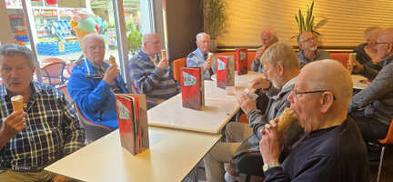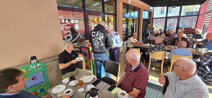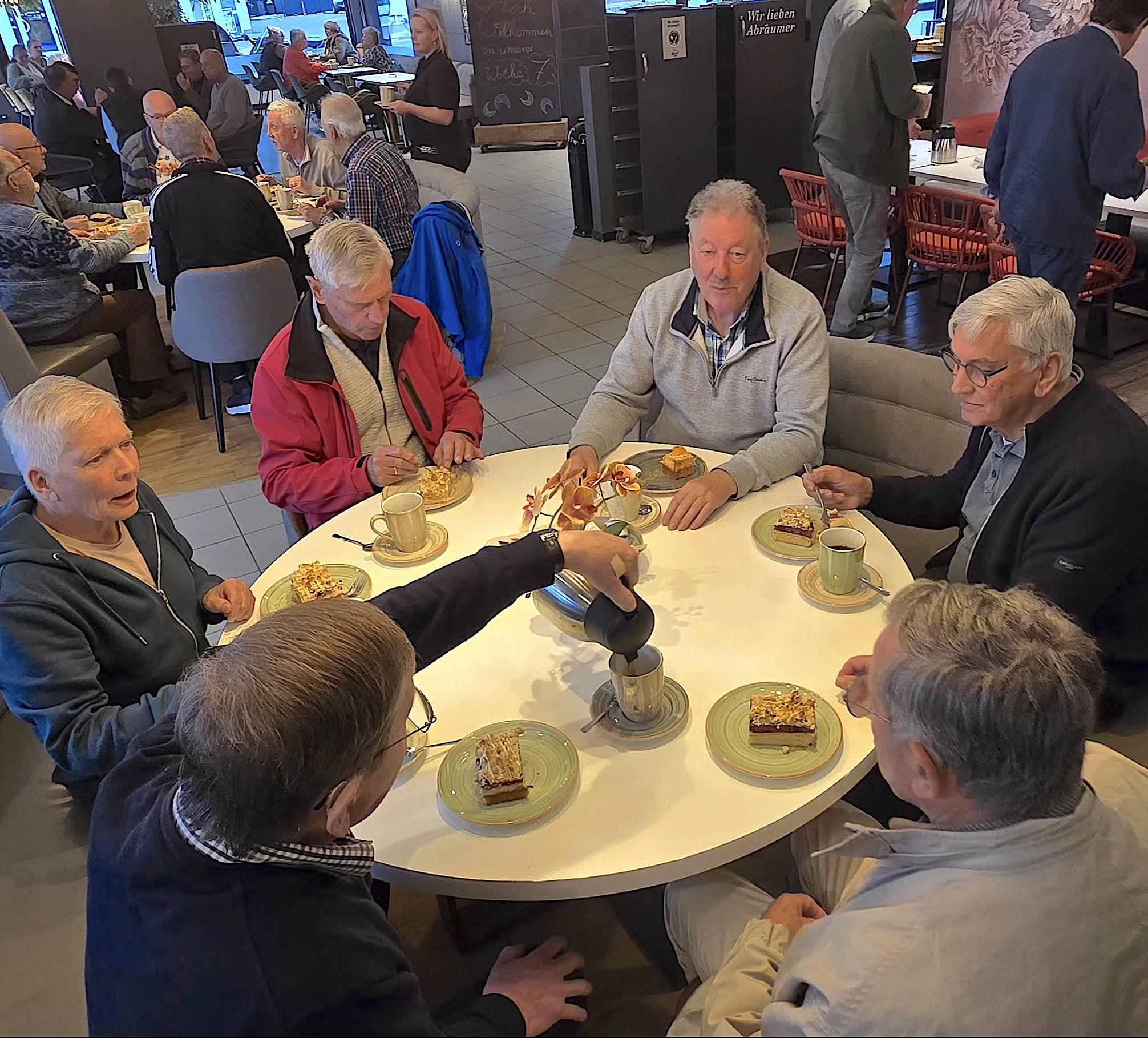 De busreis verloopt voorspoedig, onderweg wordt koffiegedronken bij Bäckerei Hensel in Hiddenhausen, net zoals vorig jaar.