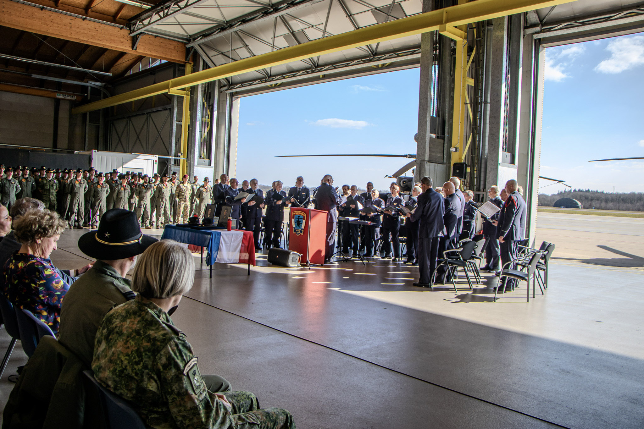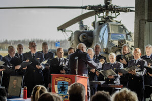 Met een bus vertrekt het Luchtmacht Mannenkoor naar Vlb Gilze-Rijen voor de de herdenkingsdienst voor de 10 jaar geleden in Mali gecrashte vliegers van het 301-Squadron.