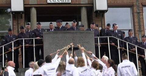 Na afloop wordt een groet gebracht bij de herdenkingsmonument naast de rolbaan.
